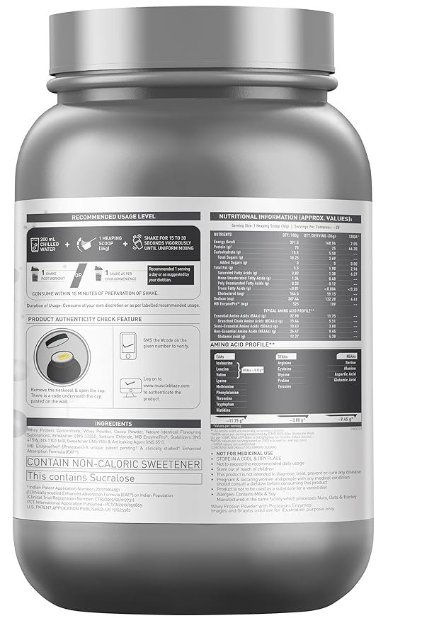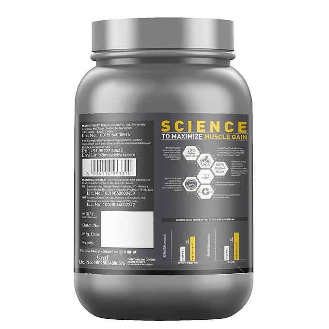 - INFORMED CHOICE, UK, LABDOOR, USA & TRUSTIFIED- TESTED & CERTIFIED: MuscleBlaze Biozyme Whey Protein has been regularly & rigorously tested, certified by Informed Choice Program U.K., Labdoor USA, Trustified for Accuracy of label Claims (Protein content, no amino spiking) & Purity (free from heavy metals or biological contaminants)